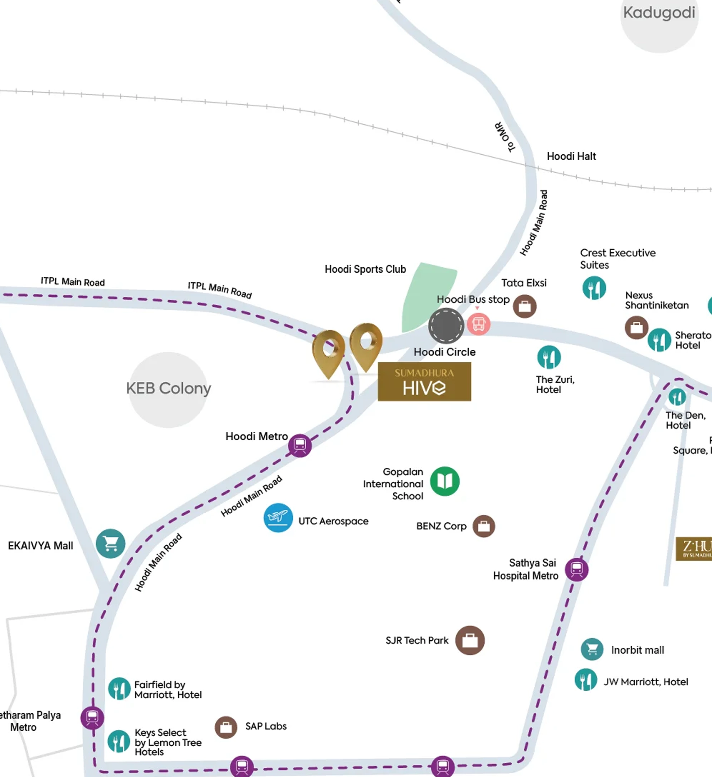 Both projects are strategically located near Hoodi Junction, Whitefield Main Road, and the Namma Metro, ensuring excellent connectivity and accessibility for tenants and visitors alike.